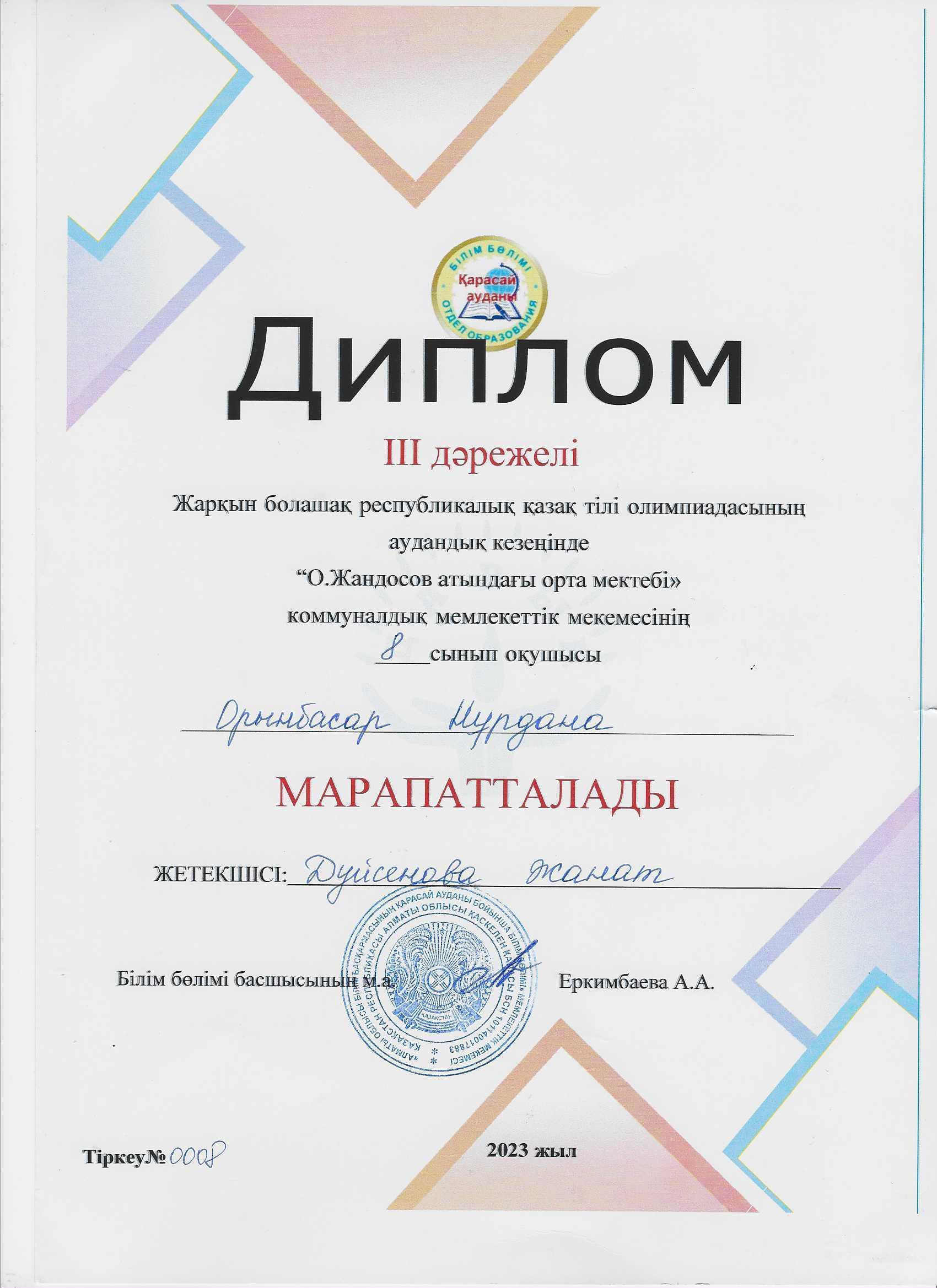 🔶Оқу -әдістемелік жұмыс🔶 9-11 сынып оқушылар арасында Жалпы білім беретін пәндер олимпиадасының аудандық кезеңі http://zhandosov-karasai.mektebi.kz/o-detskom-sade/dstemelk-zhmystar/320-ou-dstemelk-zhmys-9-11-synyp-oushylar-arasynda-zhalpy-blm-beretn-pnder-olimpiadasyny-audandy-keze.html http://zhandosov-karasai.mektebi.kz/o-detskom-sade/dstemelk-zhmystar/320-ou-dstemelk-zhmys-9-11-synyp-oushylar-arasynda-zhalpy-blm-beretn-pnder-olimpiadasyny-audandy-keze.html 9-11 сынып оқушылар арасында Жалпы білім беретін пәндер олимпиадасының аудандық кезеңінде құқық негіздері пәні бойынша І орын иеленген 10сынып оқушысы